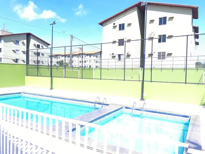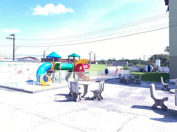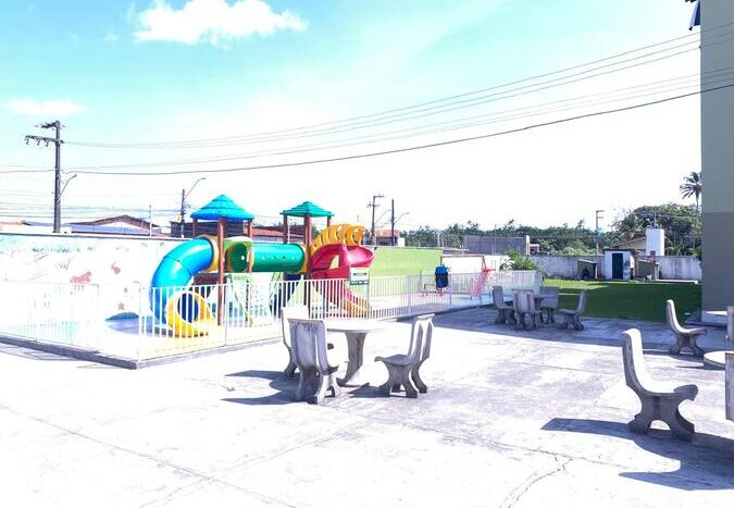 Condomínio conta com uma área de lazer completa: Salão de festas, brinquedoteca, piscina, playground…
